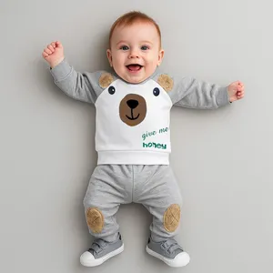 ست لباس کودک خرسی سفید و خاکستری همراه کفش