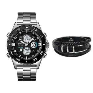 ساعت مچی عقربه‌ای 48 میلی‌متری مردانه اسکمی با موتور کوارتز، دارای نمایش 24 ساعته، صفحه‌نمایش ترکیب آنالوگ و دیجیتال طرح‌دار، بدنه فلزی، بند استیل، مدل 1389M